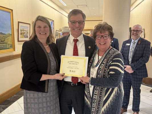 Figure 3: Governor Mark Gordon and State Parks and Cultural Resources Director Dave Glenn with Alexandra Hansen, recipient of the 2026 People’s Choice Award.